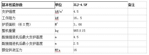 機(jī)載臨時(shí)支護(hù)裝置主要技術(shù)參數(shù)